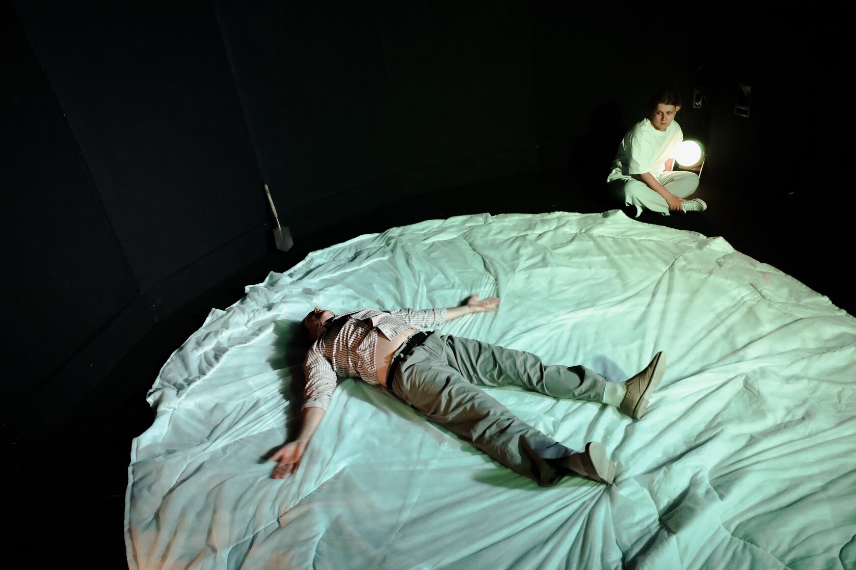спектакль разворачивает действо к космосу, задаваясь вопросом: а можно ли вообще наладить связь между поколениями?